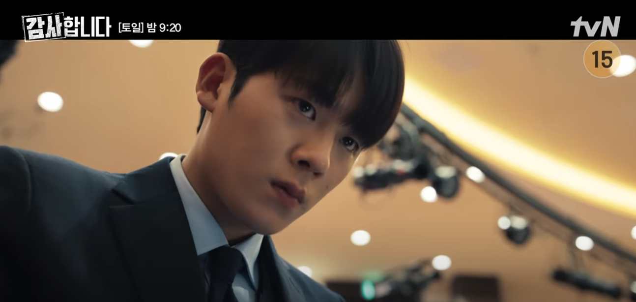 감사합니다 7회 엔딩에서 차일을 발표를 중단시키고 수상한 사람에게 다가갑니다.