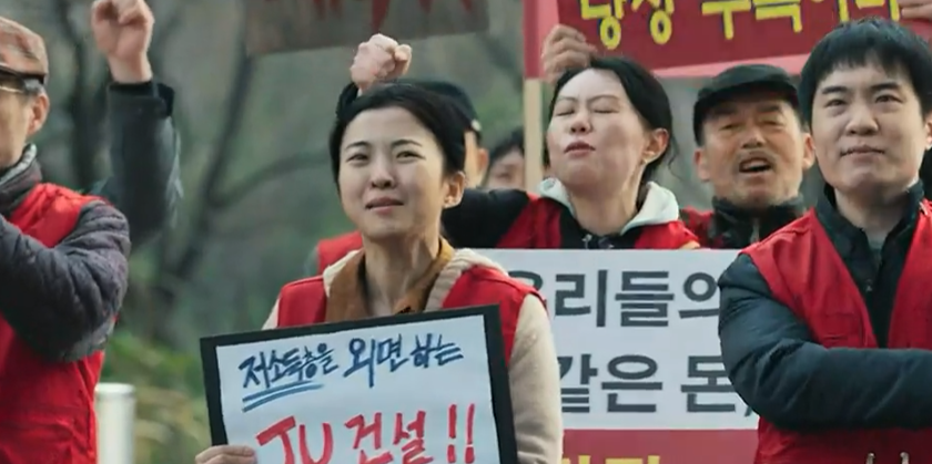 감사합니다 2회 엔딩에서 새로운 사건이 터지는데 저소득층을 외면하는 JU건설 조합장을 구속하라는 항의가 들어옵니다.