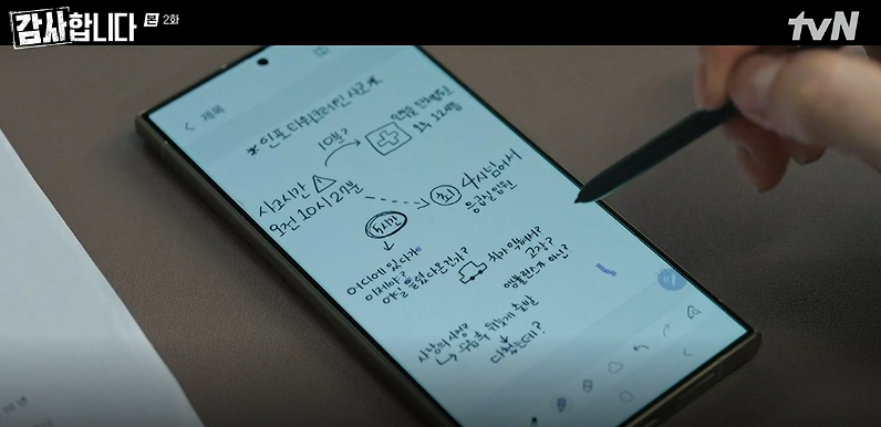 감사합니다 2회에서 노트북을 부사장님 가지고 나가셨다고 차일에게 한수는 전화를 합니다.