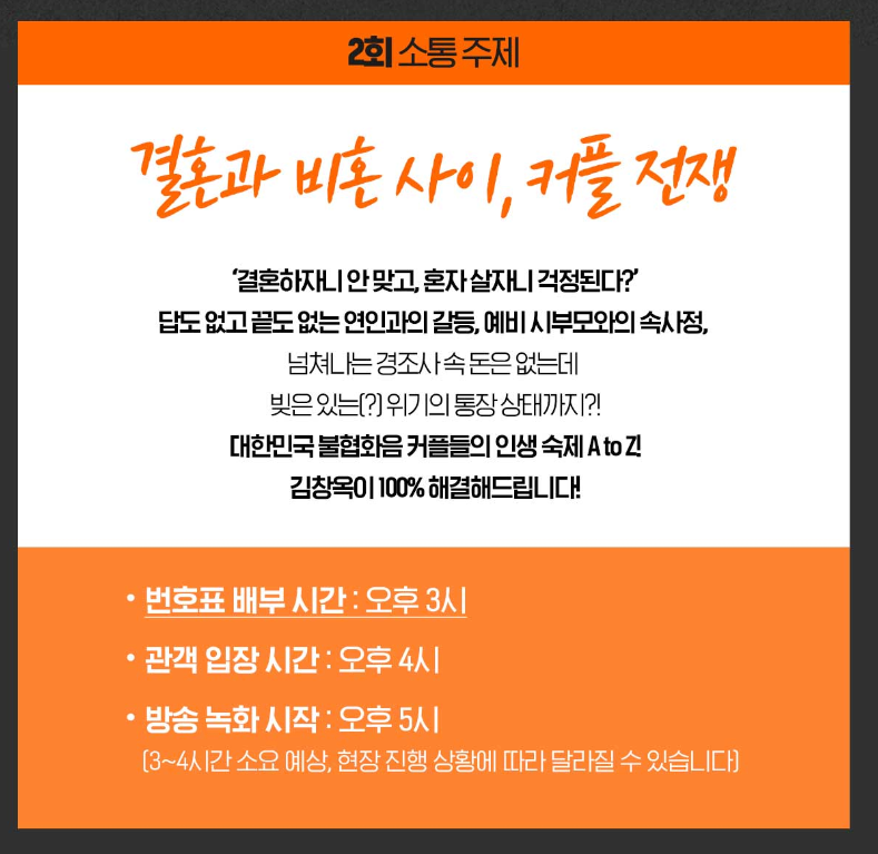 대한민국 불협화음 커플들의 인생숙제 A to Z 김창옥이 100% 해결해 드립니다.