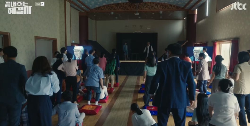 사라솔루션팀은 사이비 종교 이인자도 뒷돈을 챙긴 것을 알고 이인자를 압박해서 사이비 종교 총회를 열어서 초능력이 없음을 사이비 교주가 직접 밝히도록 합니다. 첩자도 함께 동참하게 됩니다.