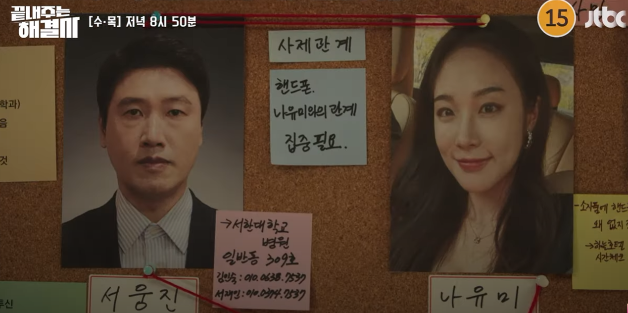 남편은 혜림유통의 유민철 대표로 사이비교주를 믿는 사람인데 사이비교주가 이혼하는 게 좋겠다고는 해서 아내에게 이혼장을 전달합니다. 기준과&표 장미는 사이비교주에 교회에들어가서 잠입수사를 하는데요 증거를 잡아서 내밀어도 남편이 믿지 않습니다.3) 서웅진교수의 사건 추적하는 기준과 사라