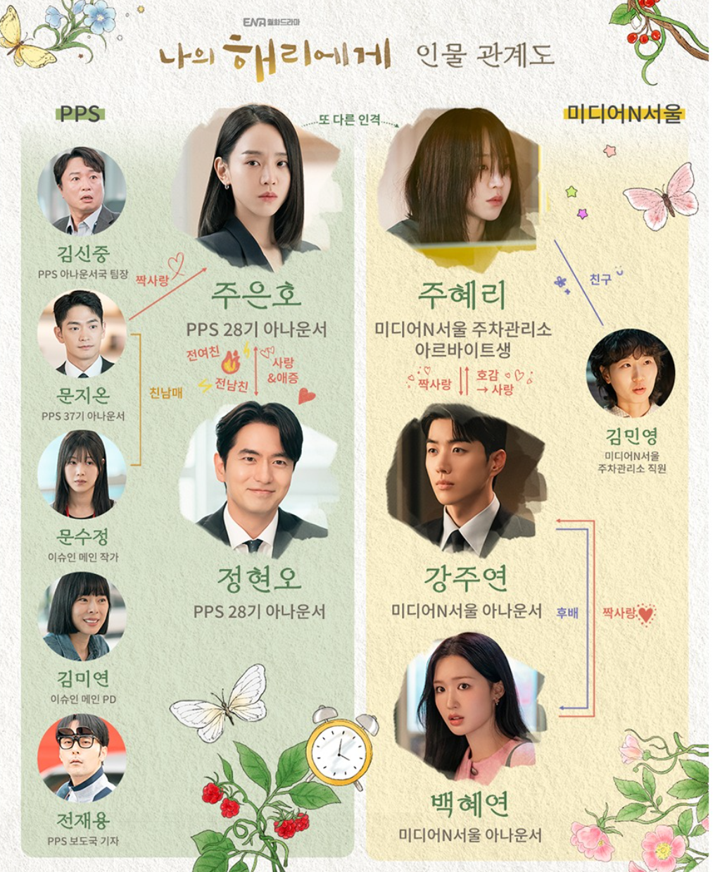 외모 어느 하나 빠지는 게 없는 미디어 N 서울소속 MZ아나운서이며 주연을 좋아해서 3년 동안 따라다닌 인물이며 혜연에게 포기란 없으며 지금은 주연을 짝사랑 중에 있습니다.