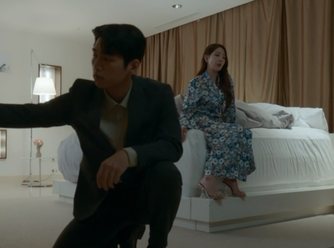 주란과장의 쓰레기 남편 주란이 입원한 병원에 찾아오고 주란을 협박합니다.