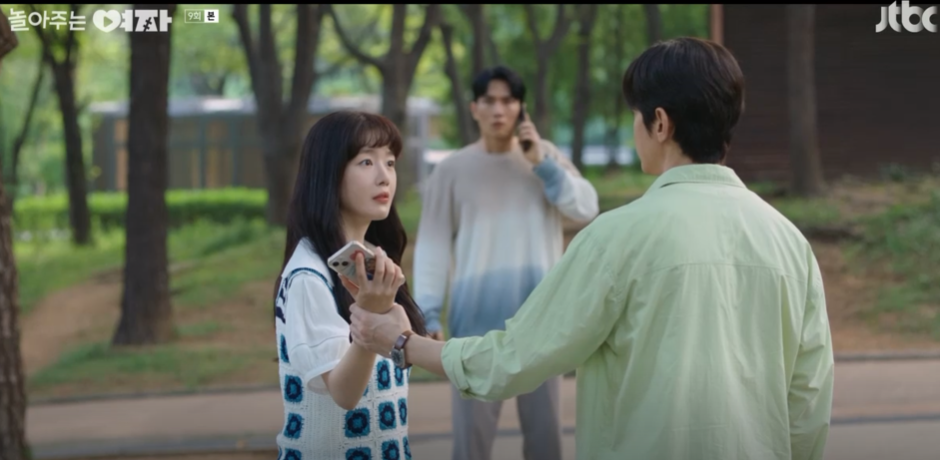 놀아주는 여자 9회에서 은하는 집을 알아보다가 책방에서 만났던 질이 나쁜 학생을 피하다가 핸드폰을 떨어트리게 됩니다. 은하에게 전화를 한 지환은 은하가 소리를 지르자 걱정되어 은하를 쫓아오고 은하의 핸드폰을 줍게 됩니다.