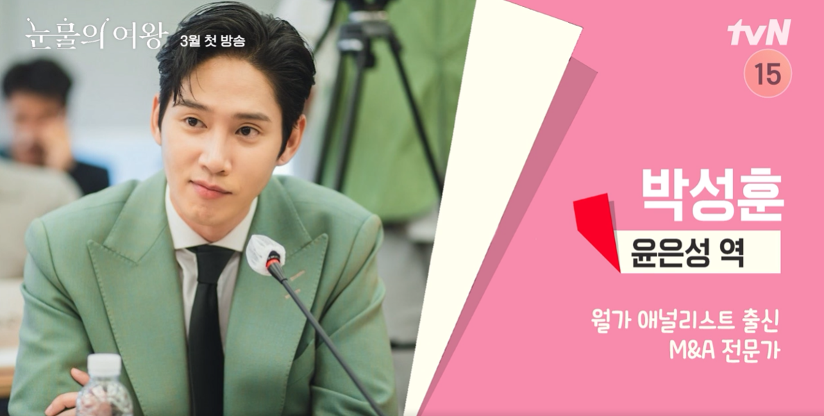 월가 애널리스트 출신, M&A 전문가로 알만한 사람들은 다 아는 유명투자가로 오랜 해외생활 끝에 한국으로 들어오게 되며 퀸즈가 와 인연을 맺는 인물이라고 합니다. 인물, 능력은 출중하나 어딘가 모르게 수상한 분위기를 가진 인물이라고 합니다.