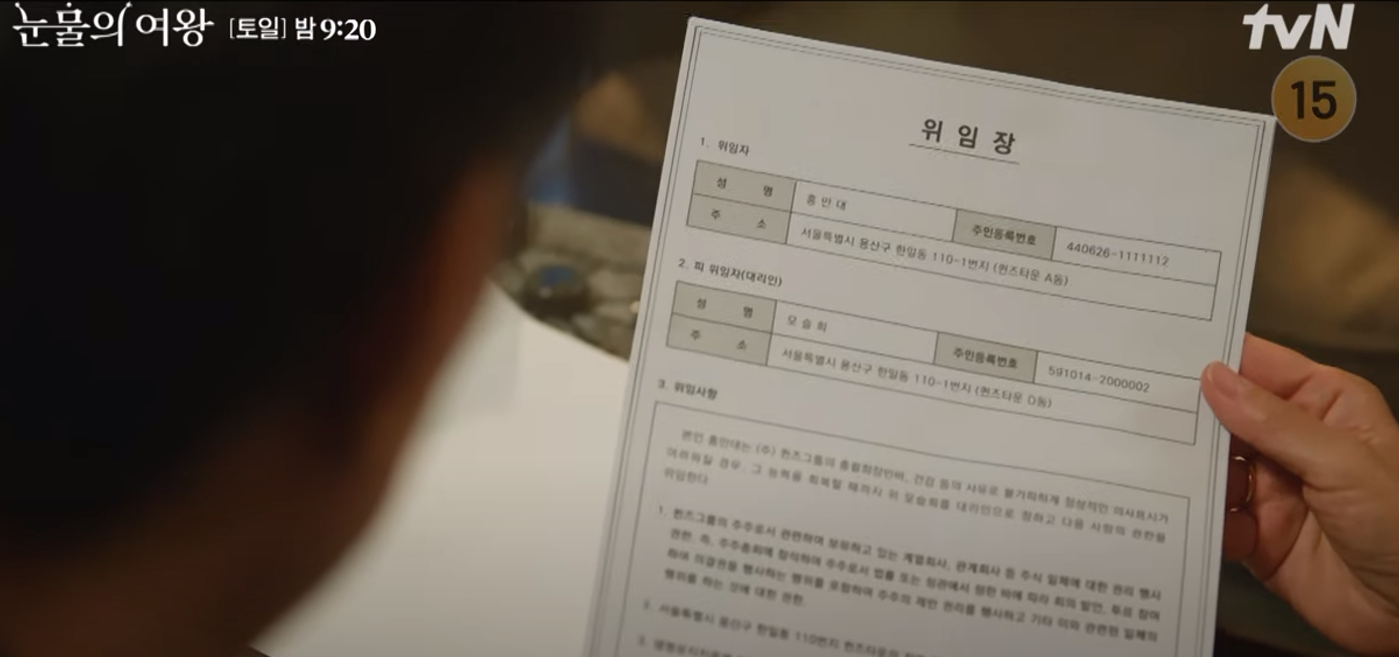 할아버지에게 약을 사용해서 심장마비를 하게 하고 위임장을 받아 자신이 해인의 할아버지의 대리인이 되네요