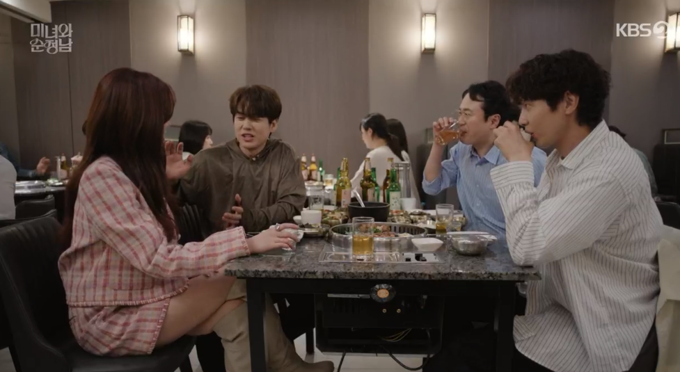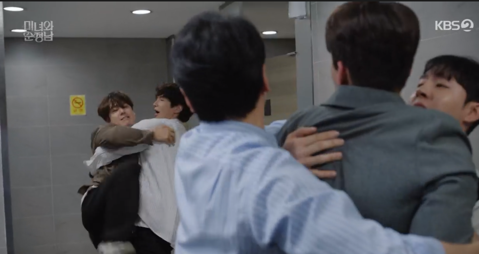 진단이 회식 분위기를 다 망치는데요. 남자주인공과 싸움을 합니다.