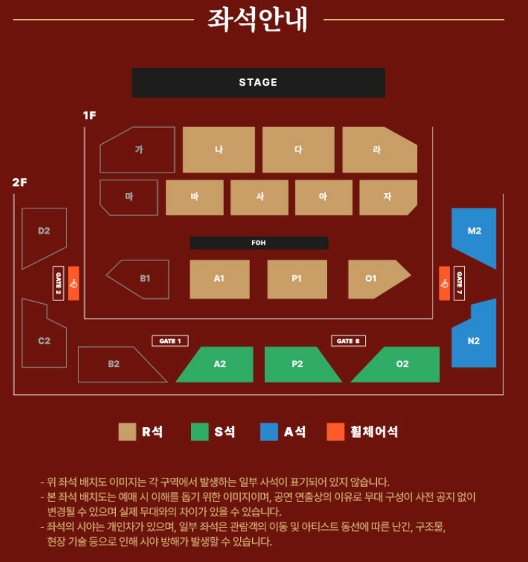 - 휠체어석은 일반 예미 오픈 익일부터 인터파크티켓 고객센터(1544-1555)를 통한 전화예매만 가능합니다.