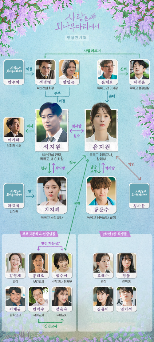 2) 사랑은 외나무다리에서 인물관계도는 다음과 같습니다.