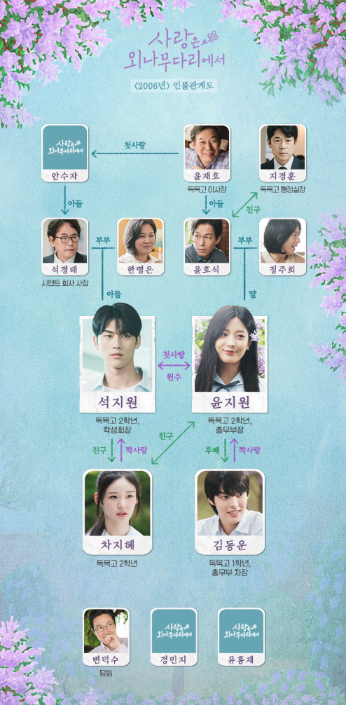 1) 사랑은 외나무다리에서 인물관계도 2006년 관계도는 다음과 같습니다.