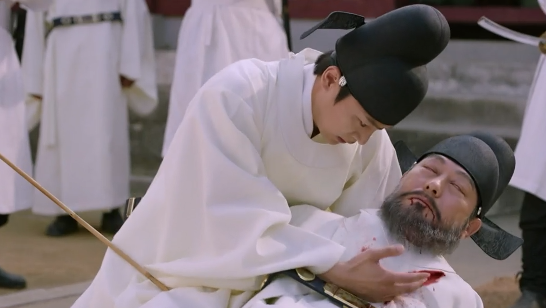 김종배를 처단하는 이인 충신으로 보일 수 있지만 형을 미혹하게 만든 인물로 왕이 되기 위해 그를 처단하는 이인 거의 진한대군 이인은 감정이 없는 그 표정은 잊을 수 없을 것 같습니다.