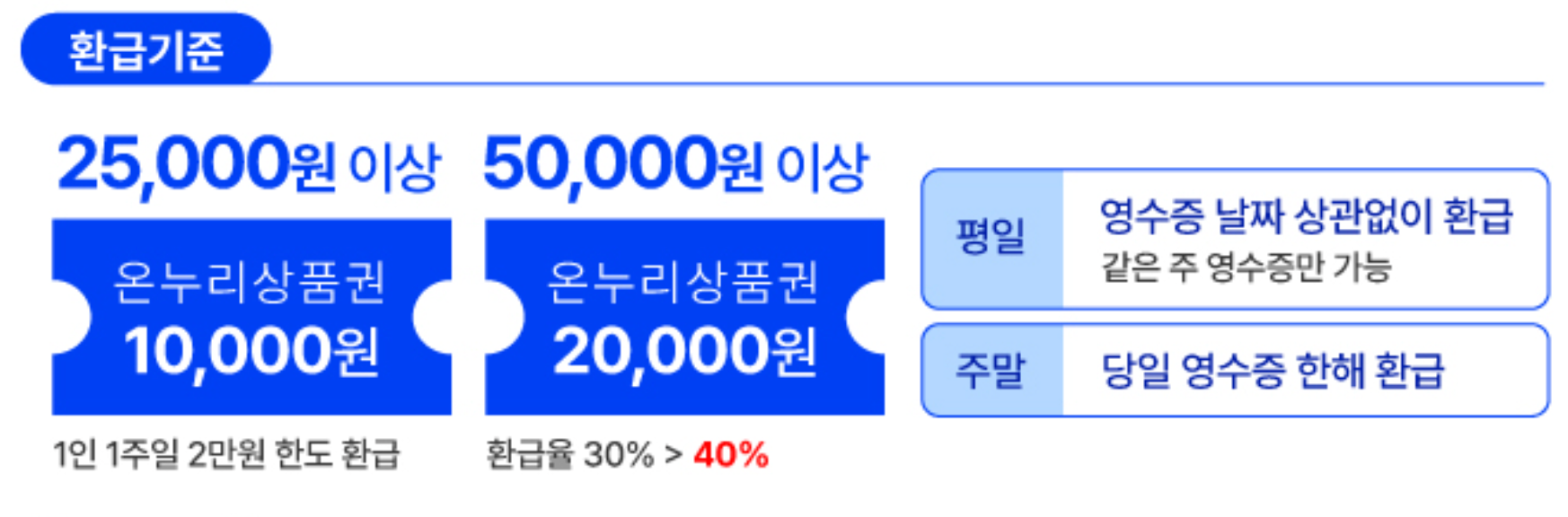 행사참여 점포에서 국산 수산물을 구입하고 점포에서 해누리 앱에 영수증 판매정보 등록하고 온누리 상품권 환급 행사장 방문해서 영수증확인 후 온누리 상품권을 환급받습니다.