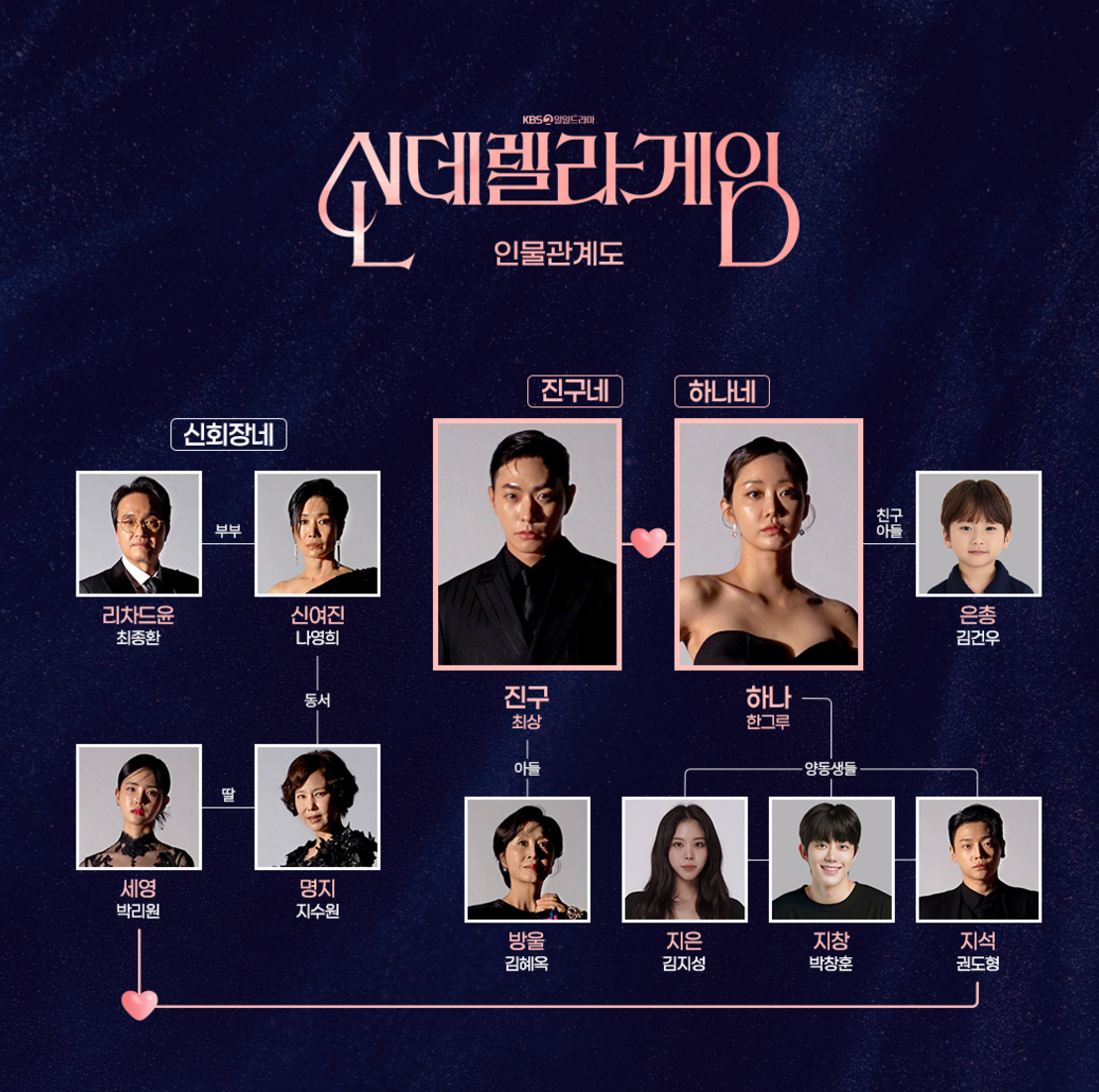 1) 신데렐라 게임 인물관계도는 다음과 같습니다.