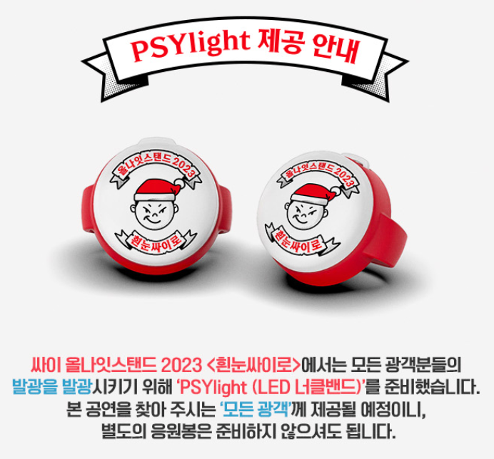 싸이 콘서트 올나잇스탠드에는 모든 관객분들에게 PSYlight(LED 너클밴드)를 준비했다고 합니다.