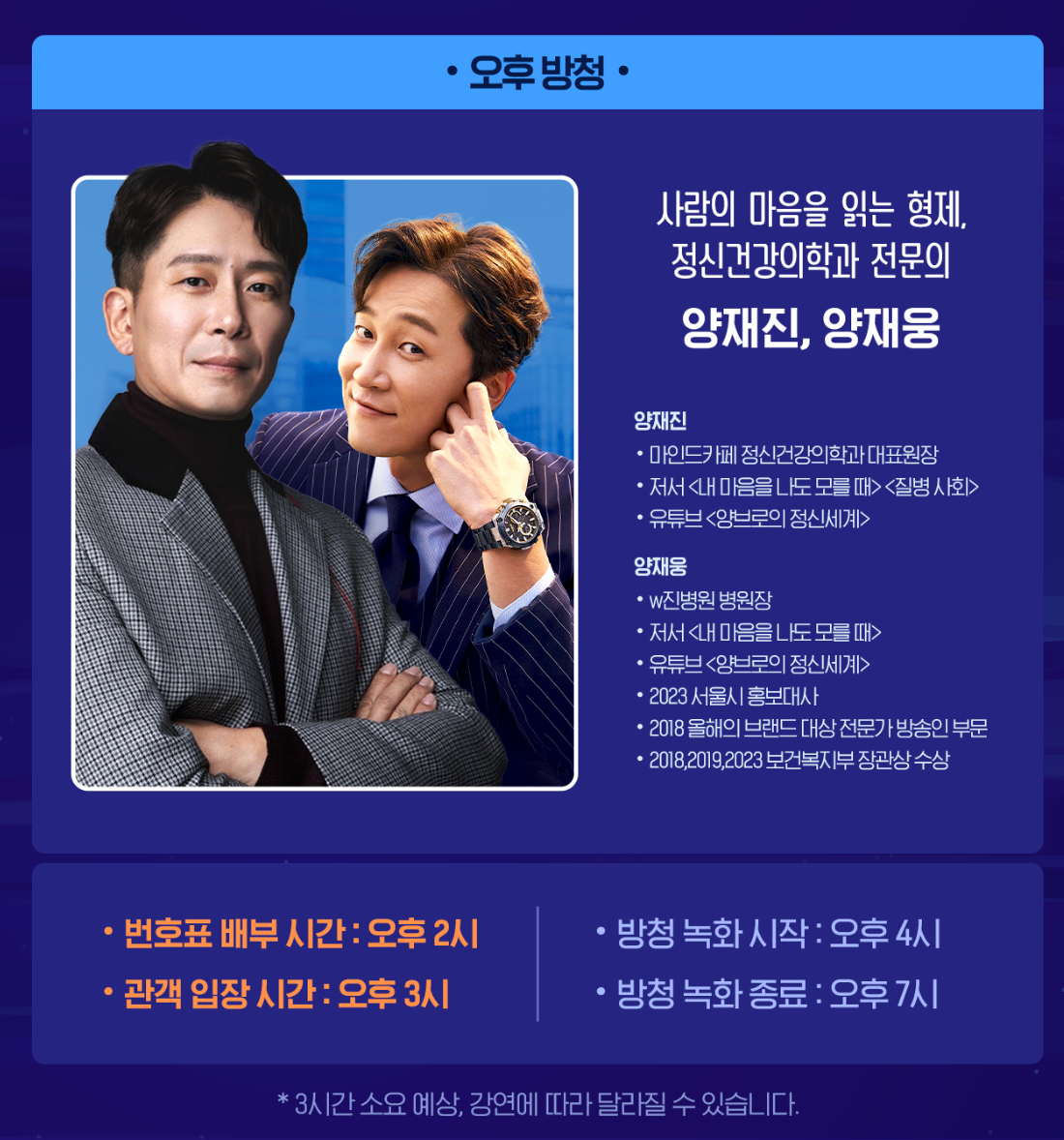 - 오후에는 사람의 마음을 읽는 형제 정신건강의학과 전문의 양재진, 양재웅 님이라고 합니다.