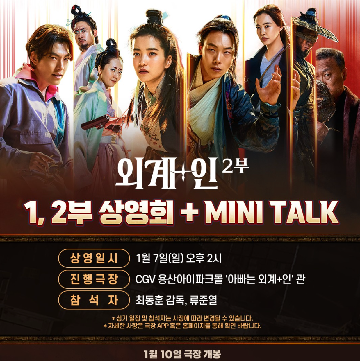외계+인 2부를 극장에서 보고 1시간 가량의 관객과의 대화가 진행된다고 합니다.
