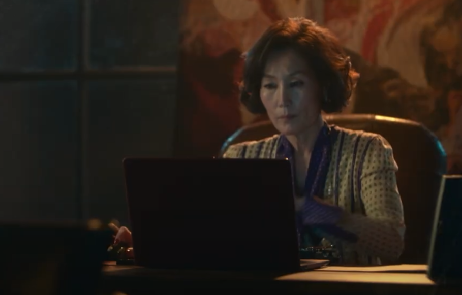 거짓말을 한 안실장에게 화가 난 시어머니 사강은 안실장을 책으로 때립니다.