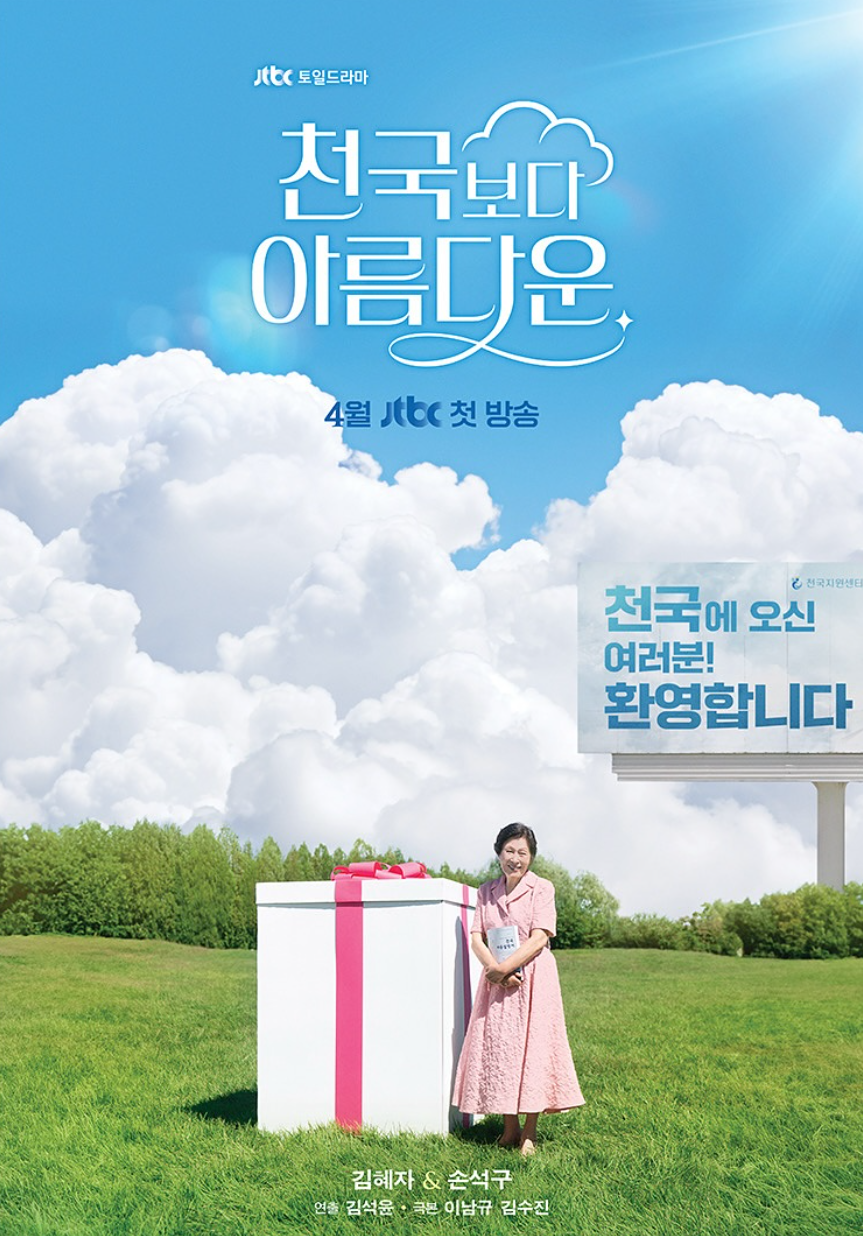 해숙은 천국에서 80세의 모습으로 도착하게 되고 그곳에 30대 젊어진 남편 낙준과 재회하면서 벌어지는 다이내믹 천국 적응기가 펼쳐집니다. 천국보다 아름다운 드라마는 죽음이라는 인생의 끝에서 제2의 삶을 시작하는 해숙의 유쾌한 웃음과 따뜻한 감동을 선사하는 현생 초월 로맨스입니다.