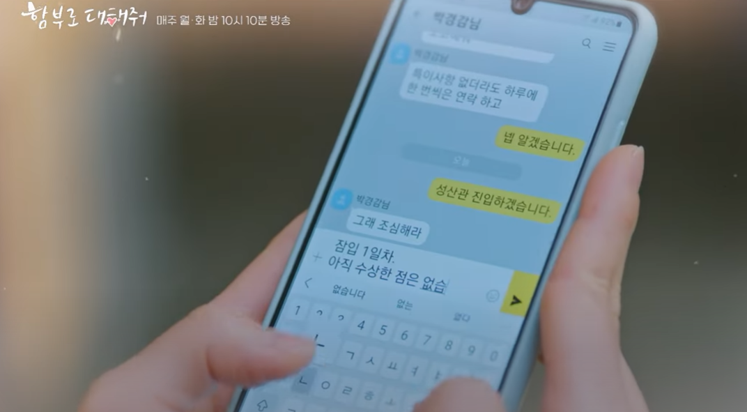 준호는 예약이 만석이라고 윤복을 돌려보내 윤복에게 잠입수사 잘 진행되고 있다는 연락이 옵니다.