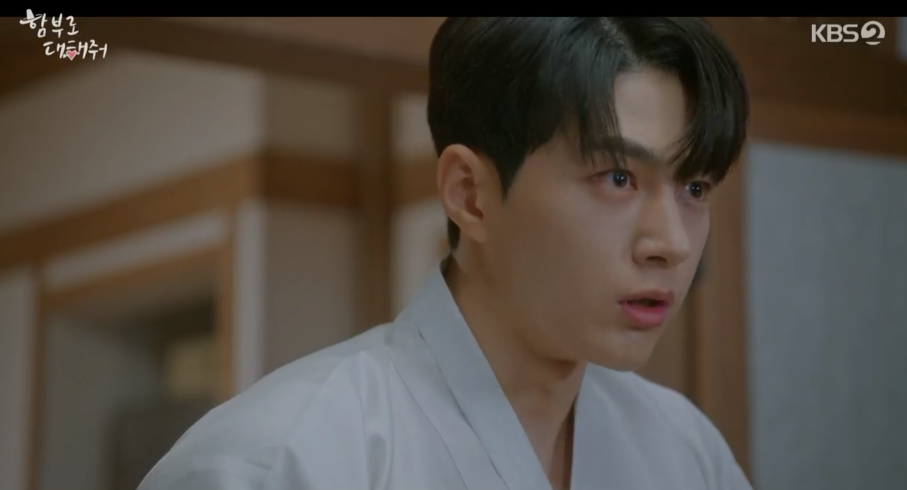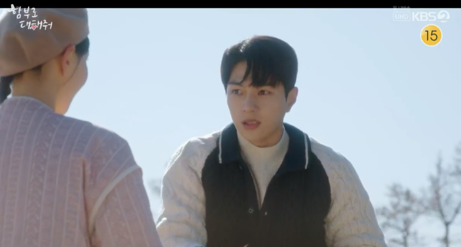 함부로 대해줘 7회에서 편지에 사랑한다라고 적혀 있고 윤복은 당황해합니다.