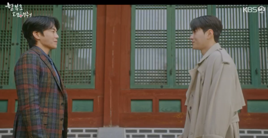 노력해 보겠다는 윤복입니다. 바로 겸상하러 가자고 합니다. 나란히 음료 한잔을 하게 됩니다.