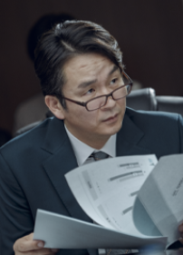 산인그룹 회장이며 산인건설에서 산인그룹으로 만든 인물이며 사방을 압도하는 카리스마를 가지고 있으며 회사를 구하기 위해 주노를 부르는 인물입니다. 산인 그룹을 상속하지 않는다는 것만으로 존경받는 인물이며 그래서 산인 그룹의 정치가 요동치기 시작합니다.