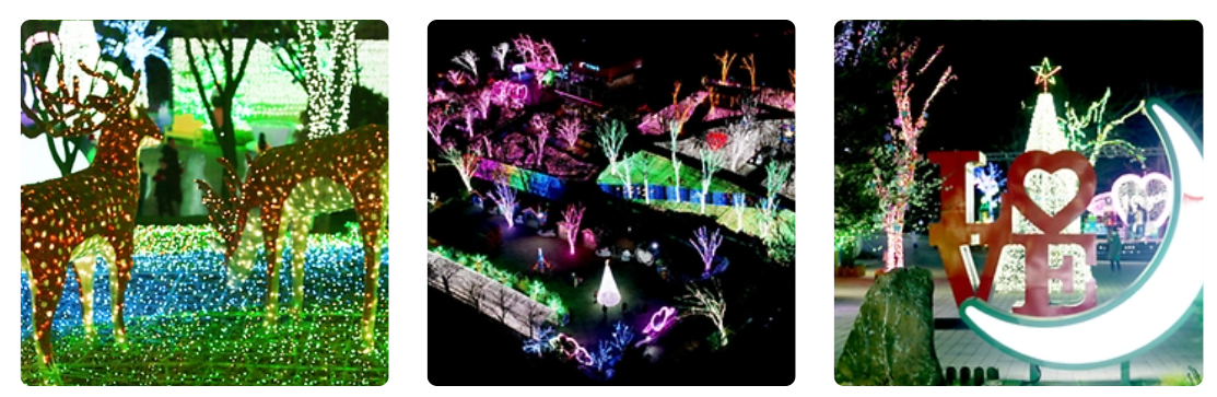 - 도심을 벗어나서 빛의 숲에서 365일 열리는 빛의 축제로 별빛이 내린 빛의 정원과 200여 마리의 실사이즈 동물조형물들로 소중한 추억을 남길 수 있는 포토존들이 가득합니다.
