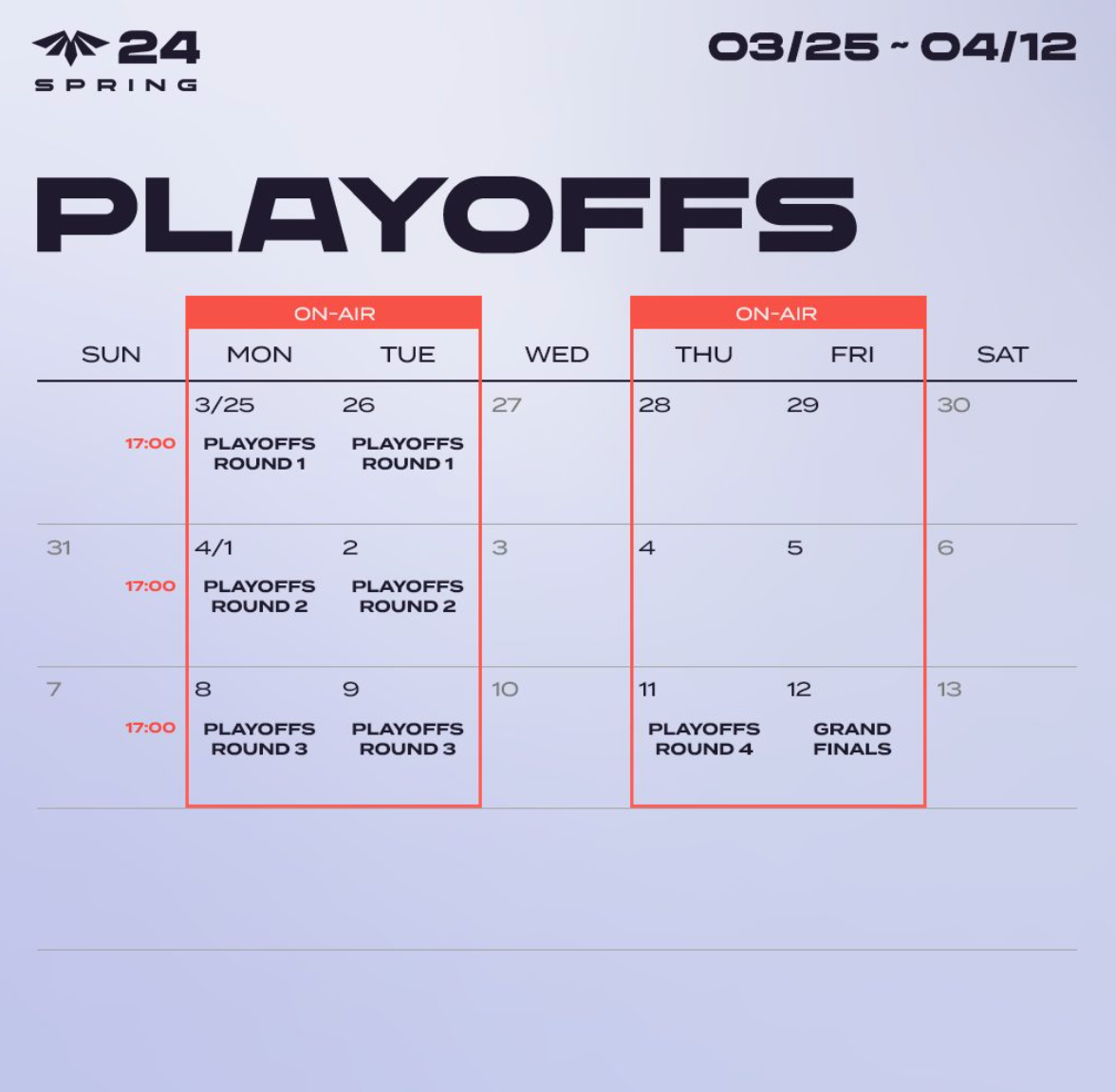LCK 챌린저스 리그 PLAYOFFS 3월 25일 ~ 4월 12일